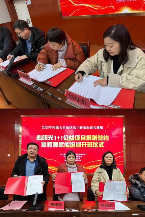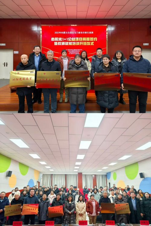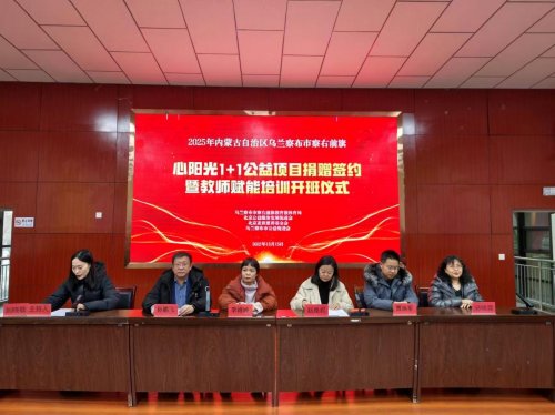 2025年12月15日上午9时30 分,“心阳光 1+1”公益项目捐赠签约暨开班仪式正式启动。察右前旗教育系统党工委副书记、教体局党组成员、副局长赵雅君;北京公益服务发展促进会常务副会长兼秘书长孙鹏飞;北京麦田慈善基金会秘书长李婷婷;乌兰察布市公益促进会会长贾换军;应用心理学博士师晓霞;五所受捐学校校长代表及全体参训教师出席仪式,流程规范有序、氛围庄重热烈。
